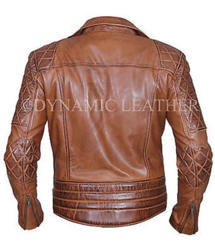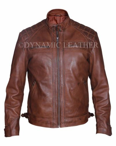 Men's Biker Quilted Vintage Distressed Motorcycle Cafe Racer Leather Jacket