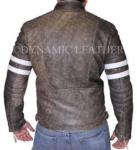 Vintage Fight Club Leather Motorcycle Biker Jackets with white stripes