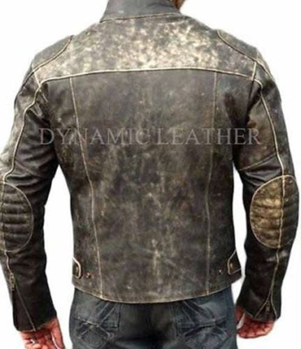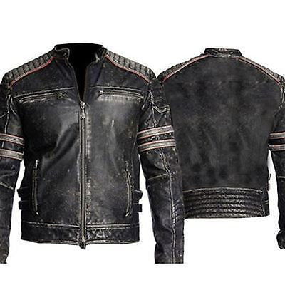 Mens Biker Vintage Motorcycle Distressed Black Retro Leather Jacket