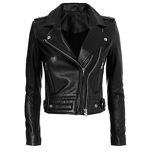 Piccola Neri da Donna Slim Stile Biker Giacca in Vera Pelle