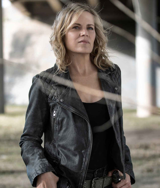 Fear The Walking Dead Madison Clark Distressed Black Quilted Ladies Leather Jacket
