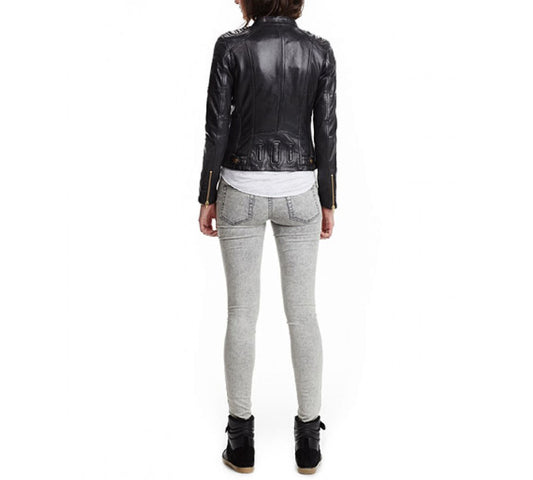 Women's Genuine Lambskin Leather Motorcycle Slim fit Designer Biker Jacket