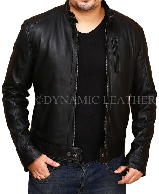 Schwarze Biker-Vintage-Motorradjacke aus gewachstem Cafe Racer-Leder für Herren