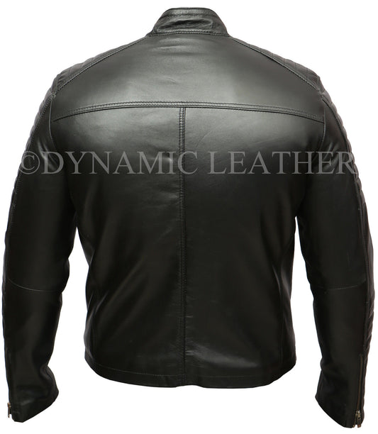 Mens Biker Classic Diamond Racer Black Soft Real Leather Jacket