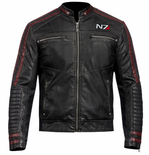 Mass Effect 3-N7 Commander Shepard Elegante Chaqueta de Cuero Motera