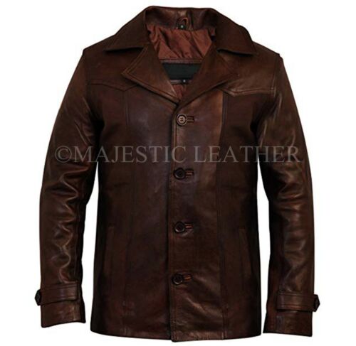 HERREN Echt Antik Vintage Braun Leder Jacke Mantel