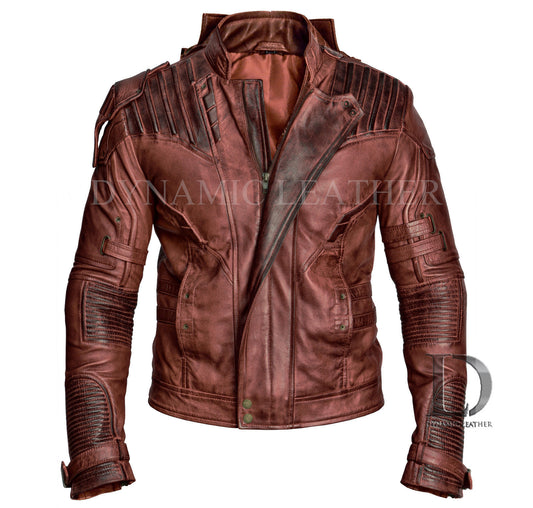 Guardians of the Galaxy 2 Star Lord Reddish Waxed Brown Real Leather Jacket