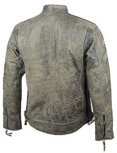 Homme Motard Vintage Antique Marron Émaillé Hunter Poche Veste en Véritable Cuir