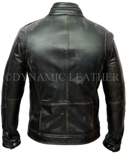 Mens Vintage Biker Style Motorcycle Cafe Racer Distressed Leather Jacket