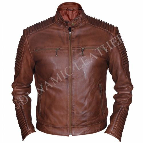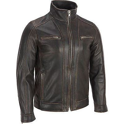 Mens Vintage Distressed Faded Seams Cafe Racer Cowhide Leather Jacket