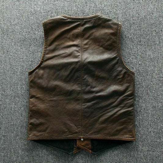 Men's Distress Black Cow Hide Leather Vest