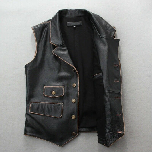 New Men's Biker Vintage Tan Brown Real Leather Motorcycle Button-Down Vest