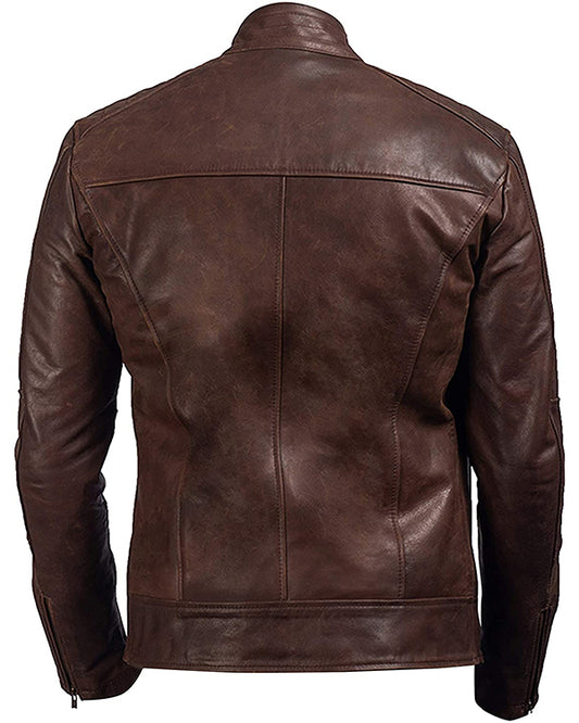 Men's Magnificent Dark Chocolate Brown Biker Vintage Motorcycle Distressed Racer Leather Jacket (837)