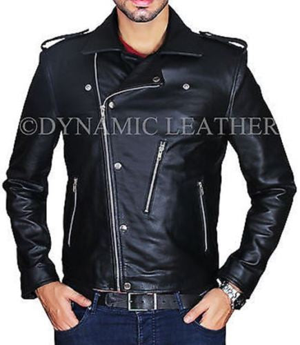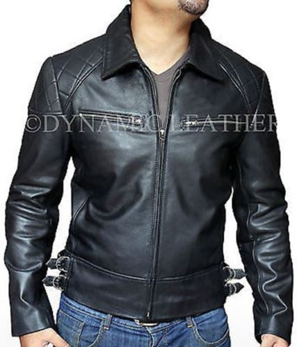 MEN'S SLIM FIT BLACK BIKER REAL LEATHER JACKET-BNWT