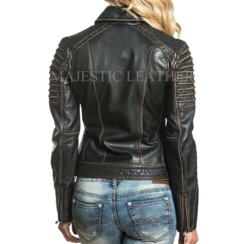 NEW WOMEN'S BLACK VINTAGE LAMB LEATHER MOTO JACKET