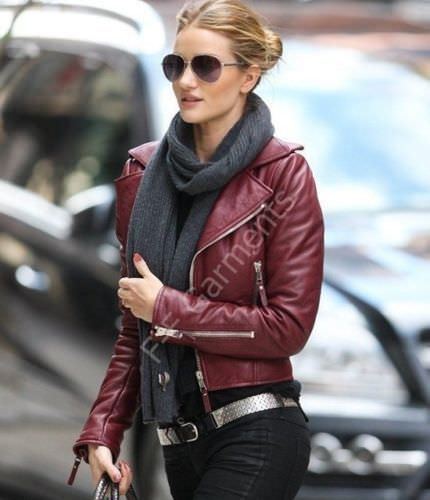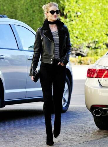 Rosie Huntington Whiteley Black Leather Shearling Jacket For Women