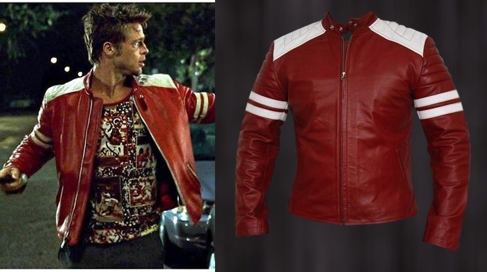 FIGHT CLUB FC RED MOTOR BIKER STYLISH REAL LEATHER JACKET