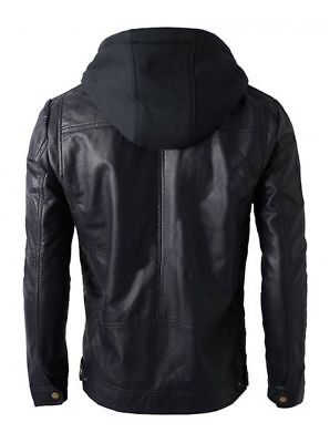 Men's Brando Double Zip Slim Fit Genuine Leather Jacket with Detachable Hood