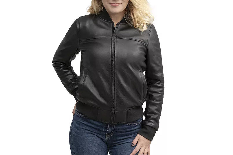 Discover timeless style with the Women’s Leather Bomber Jacket from Majestic Leather. Crafted from premium genuine leather, this jacket combines the classic bomber design with unparalleled sophistication. With its sleek fit, ribbed cuffs, and durable construction, this bomber jacket is a perfect blend of comfort and style. Elevate your wardrobe with a jacket that embodies the essence of luxury and craftsmanship, only from Majestic Leather.