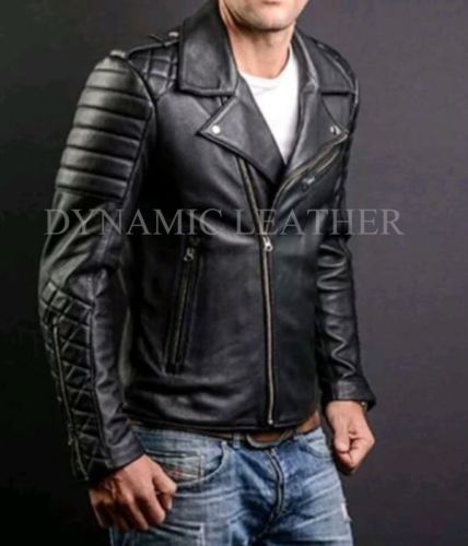 MEN’S FASHION GENUINE LEATHER SLIM FIT QUILTED BLACK LEATHER BIKER JACKET