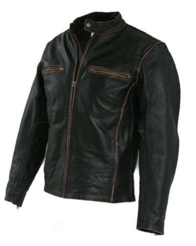 Men’s Motorcycle Biker Vintage Cafe Racer Distressed Black Real Leather Jacket