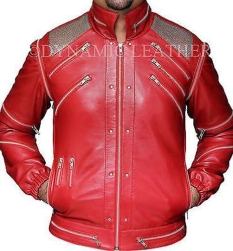 Michael Jackson Thriller Mens Real Red Leather Jacket