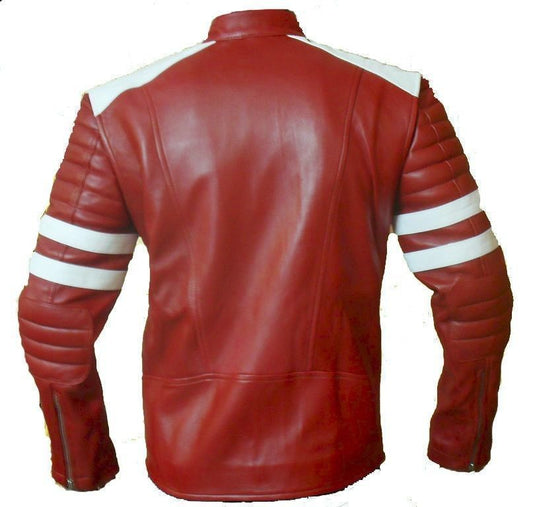 Fight Club Brad Pitt Real Leather Jacket FC Coat Red