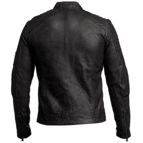 Hommes Cuir Vieilli Veste Motard Peau D'Agneau