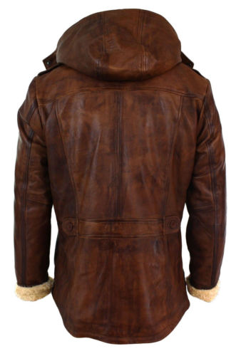 Mens Real Leather Hood Duffle Safari Fur Long 3/4 Brown Tan Winter Jacket