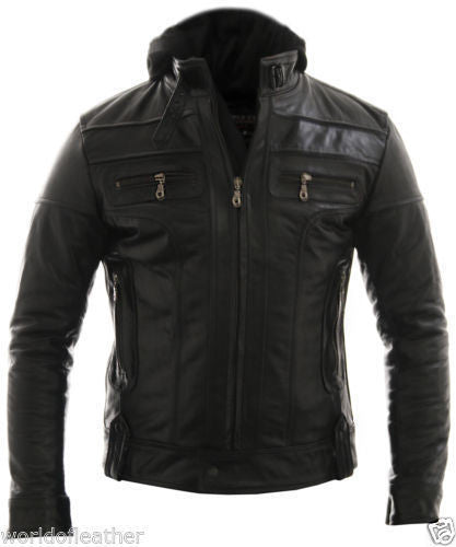 New Men's Motorcycle Brando Style Biker Real Leather Hoodie Jacket - Detach Hood