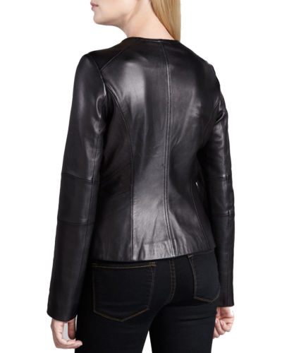 NEW WOMEN'S BLACK VINTAGE LAMB LEATHER MOTO JACKET