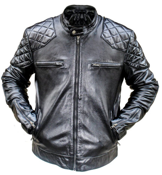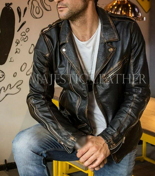 Men's Elite Herran Biker Motorcycle Distressed Black Leather Jacket