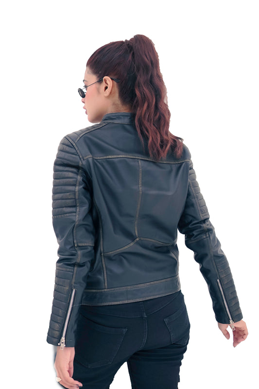Women Leather Jacket Black Slim Fit Biker Motorcycle lambskin-All Sizes