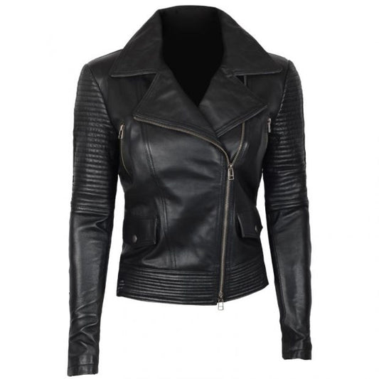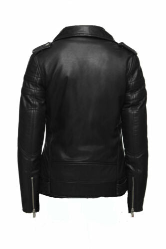 New Women's Black Quilted Slim Fit Biker Style Moto Lambskin Leather Jacket