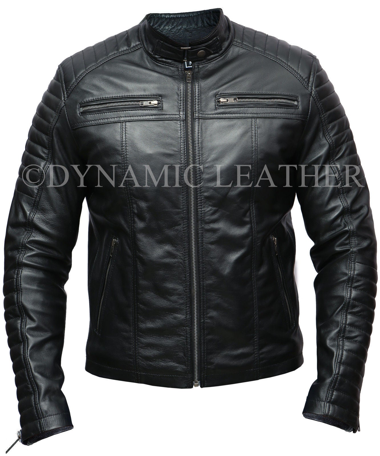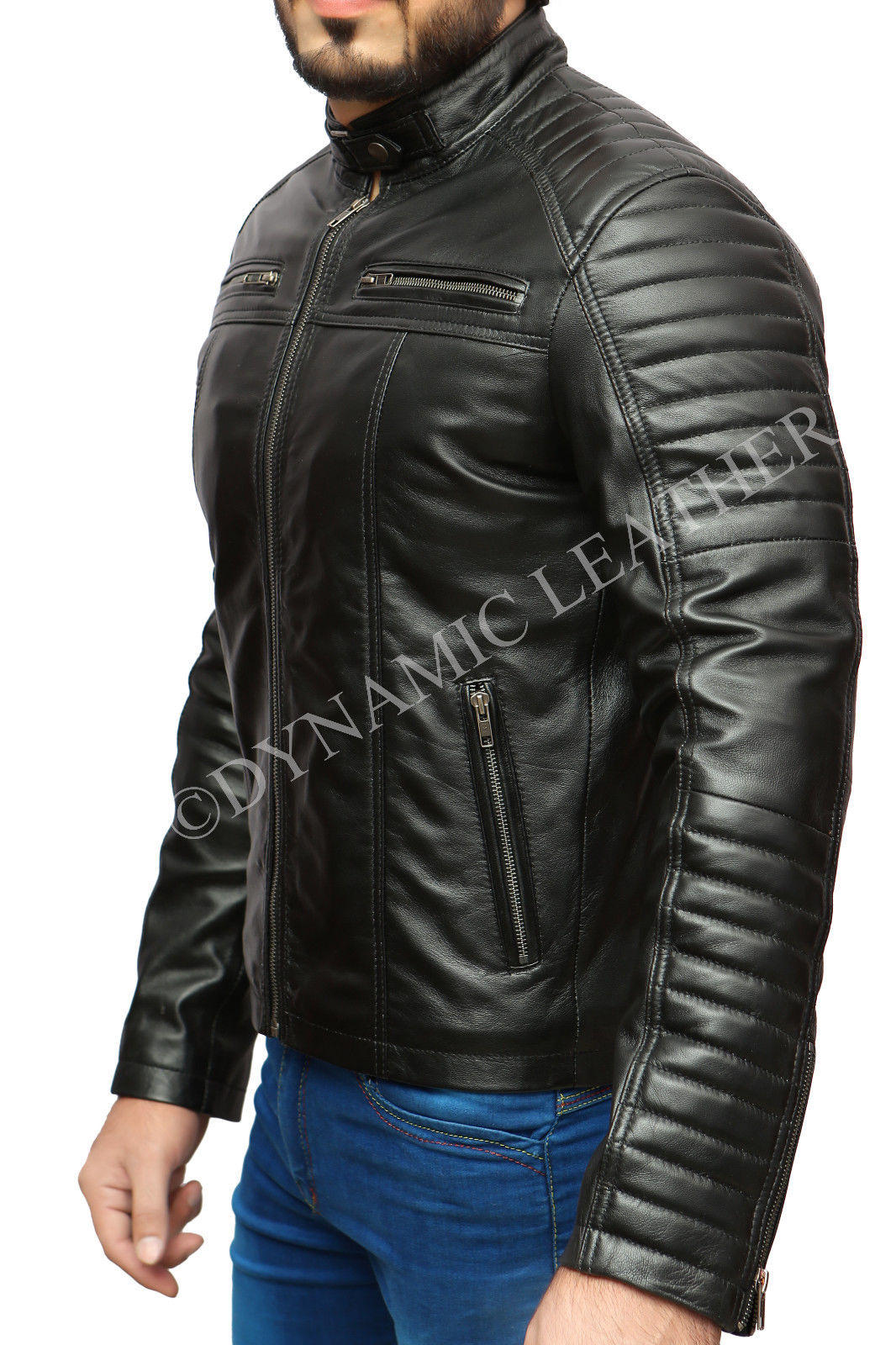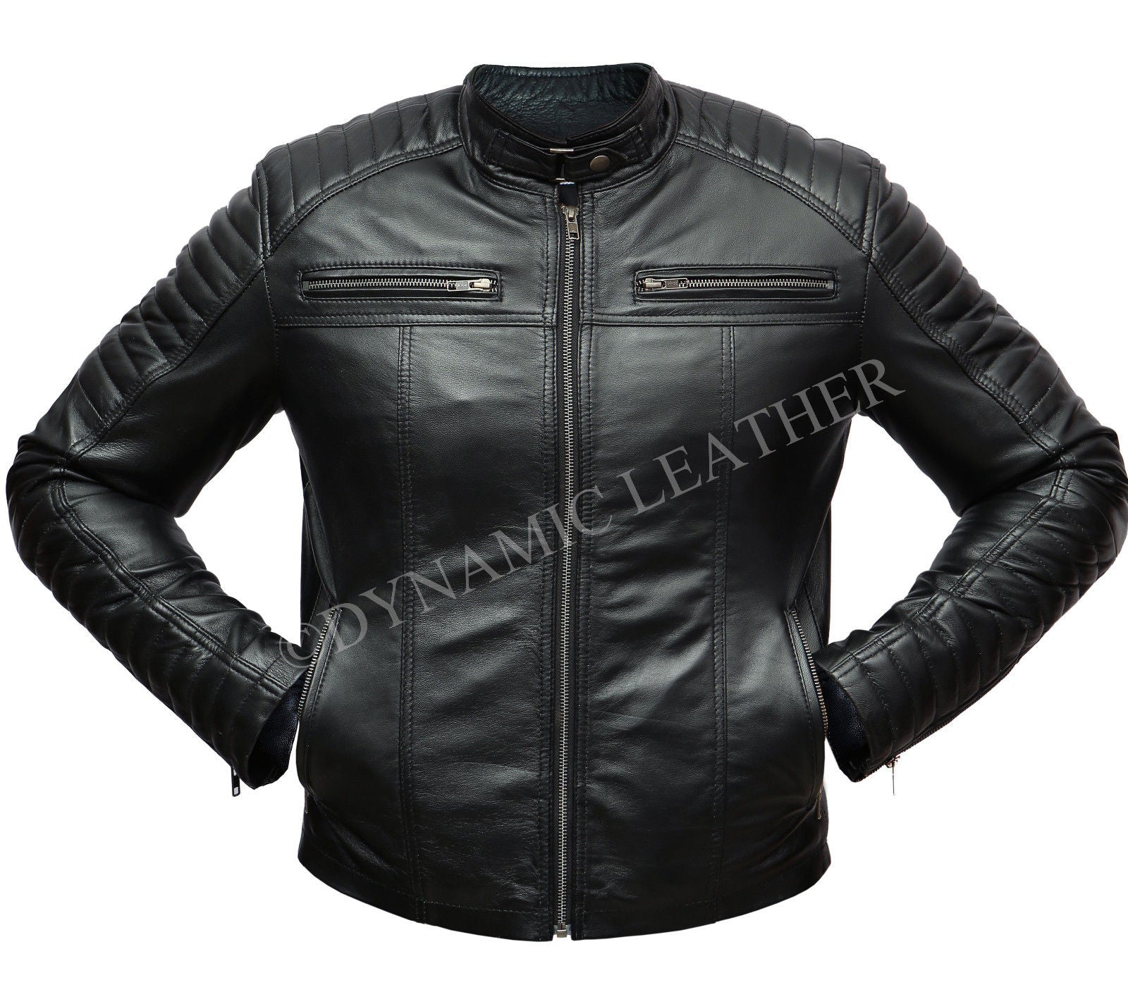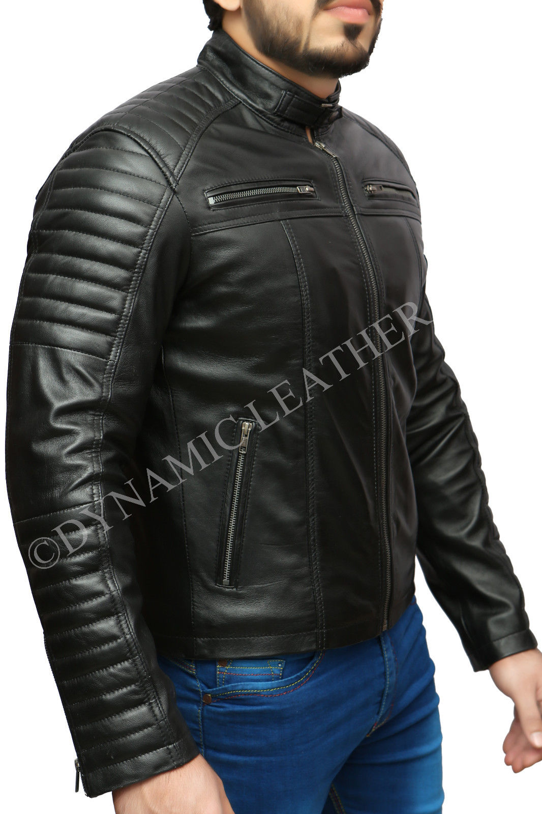 Mens Biker Classic Diamond Racer Black Soft Real Leather Jacket