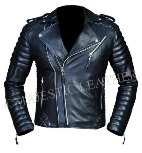 Men's Diamond Quilted Kay Michael Soft Leather Black Slim Fit Biker Jacket-BNWT
